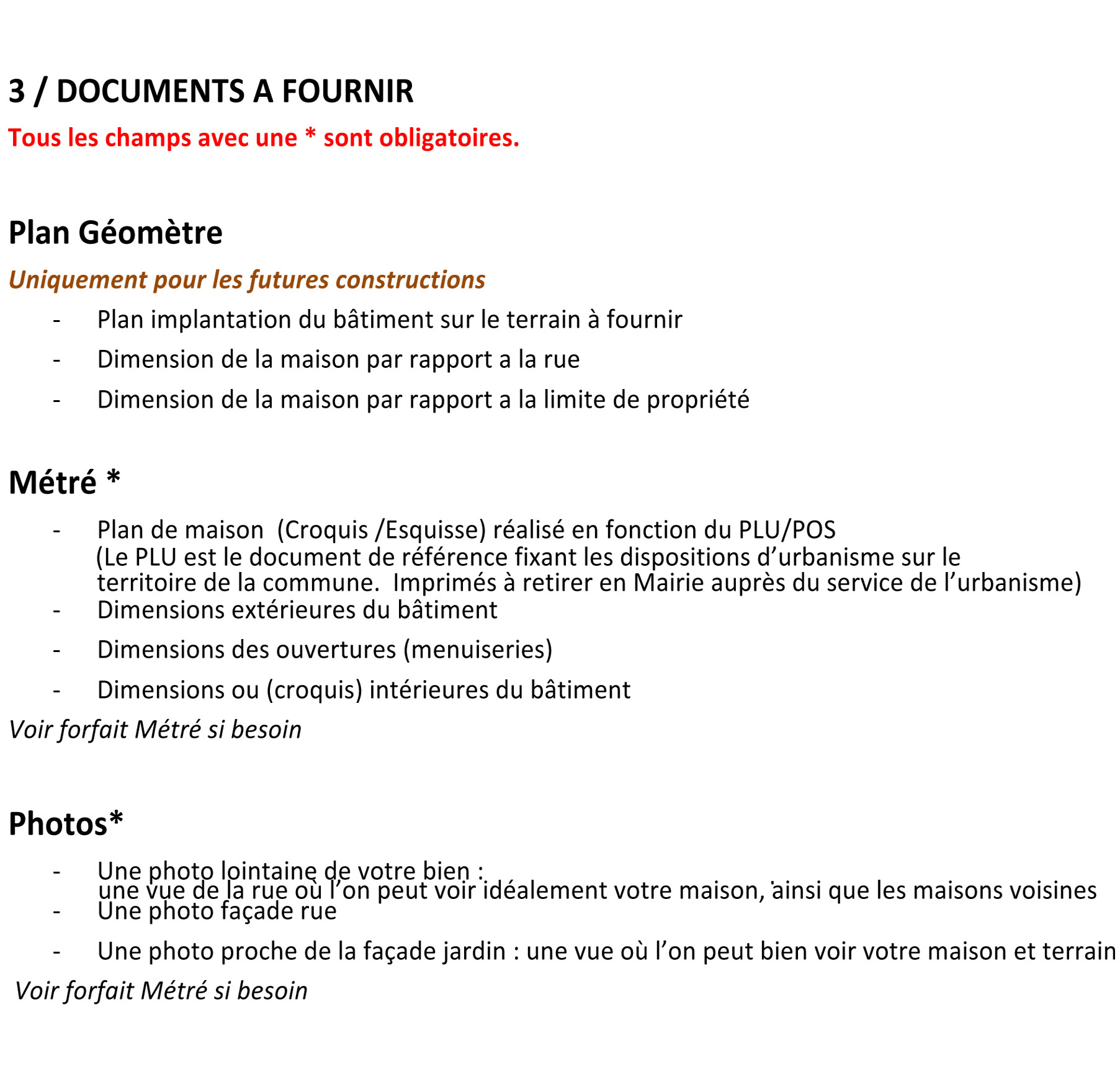 Pièces à fournir